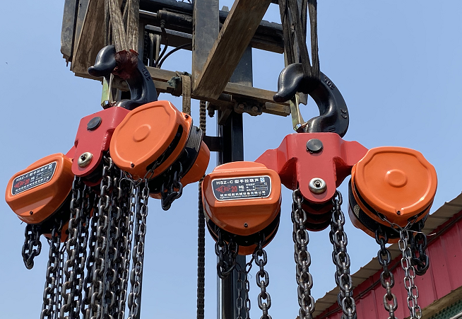手動倒鏈是該工廠車間懸掛在高處的起重設備,借助一個堅固的吊點就能幫助工人輕松將2噸重的泵體提升到高處,加快噴霧泵的檢修進度。